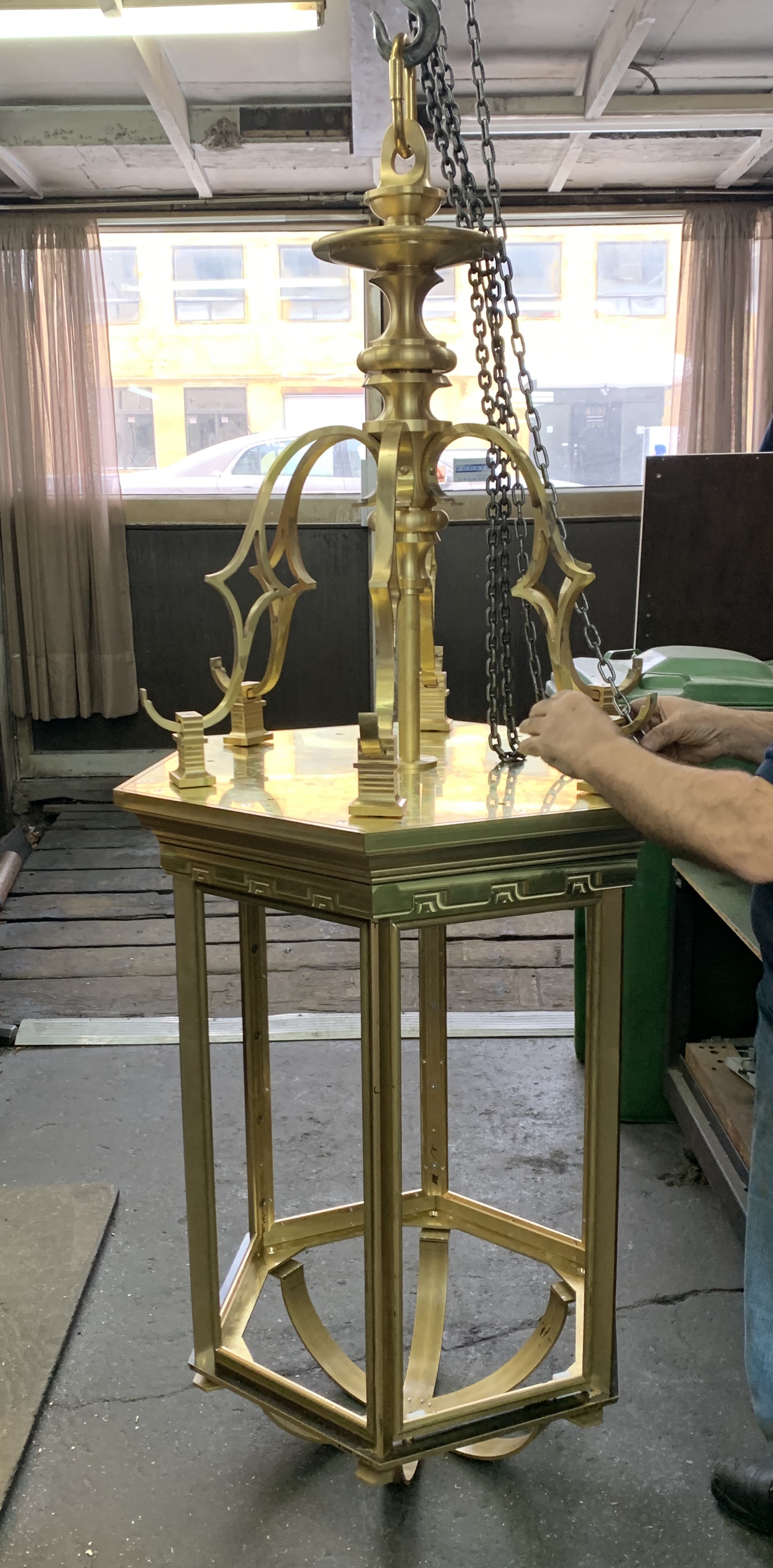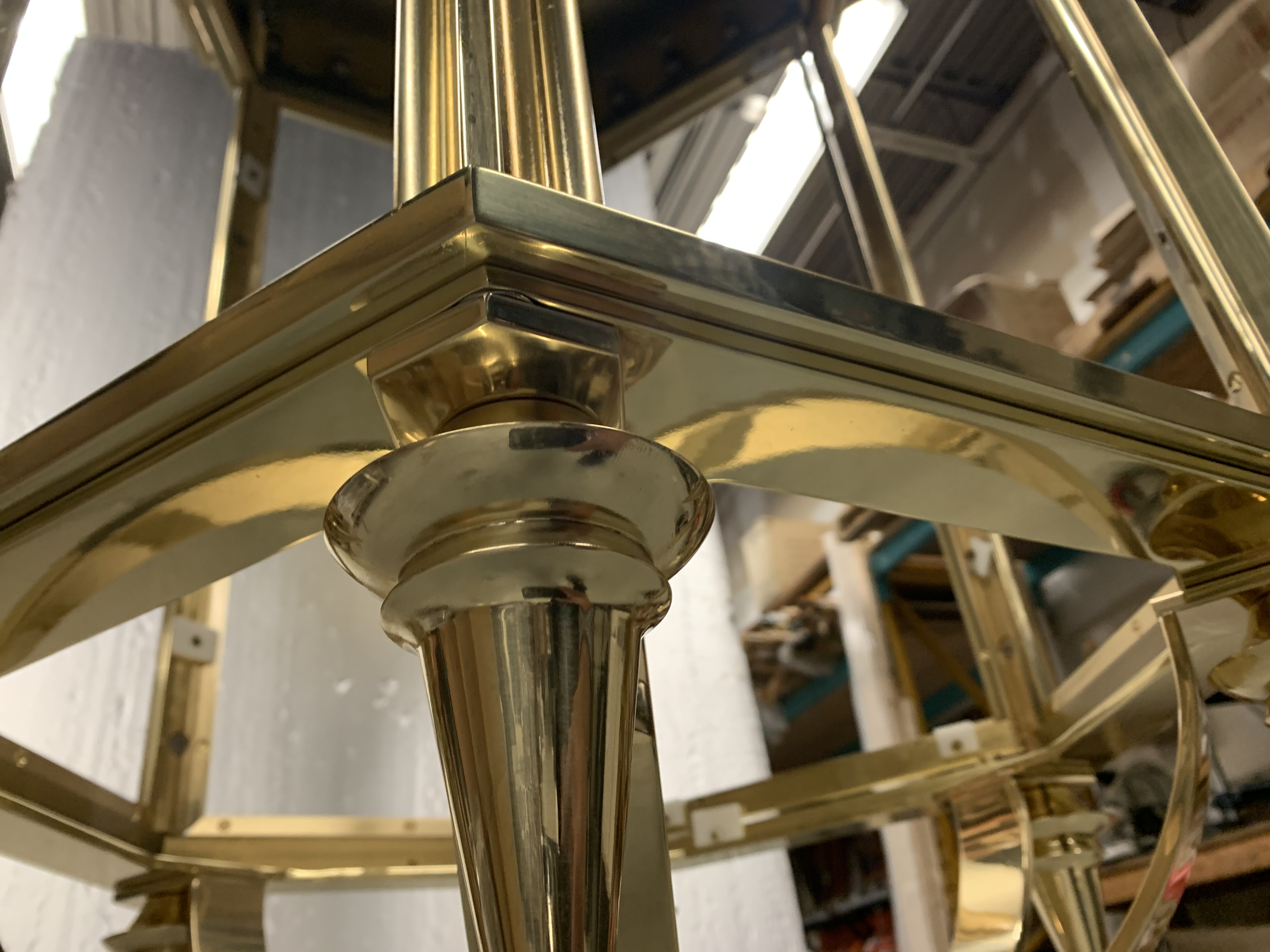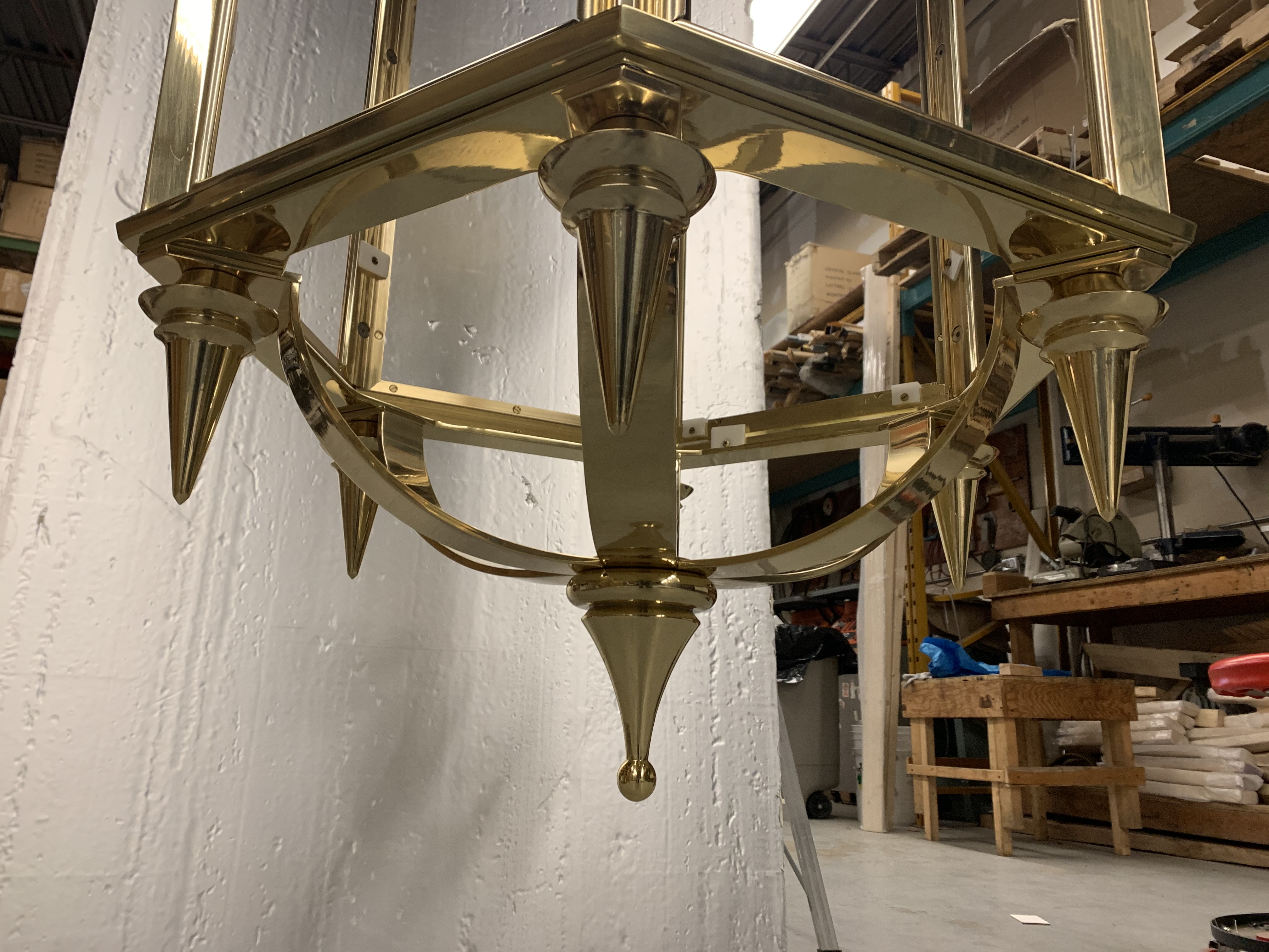 Description:This fixture was created to perfectly replicate and blend in with ones that have been hanging in UNION STATION for about 90 years. It is made of solid brass, designed in Autocad 3D direct to CNC machining, then polished to a shine and laquered with a clear finish, to withstand the test of time. The amber coloured glass is textured and made to mimic the antique glass of the existing fixtures.